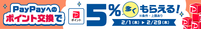 2月1日より、PayPayマネーライトのポイント交換で【5%増量】キャンペーンがスタート!
